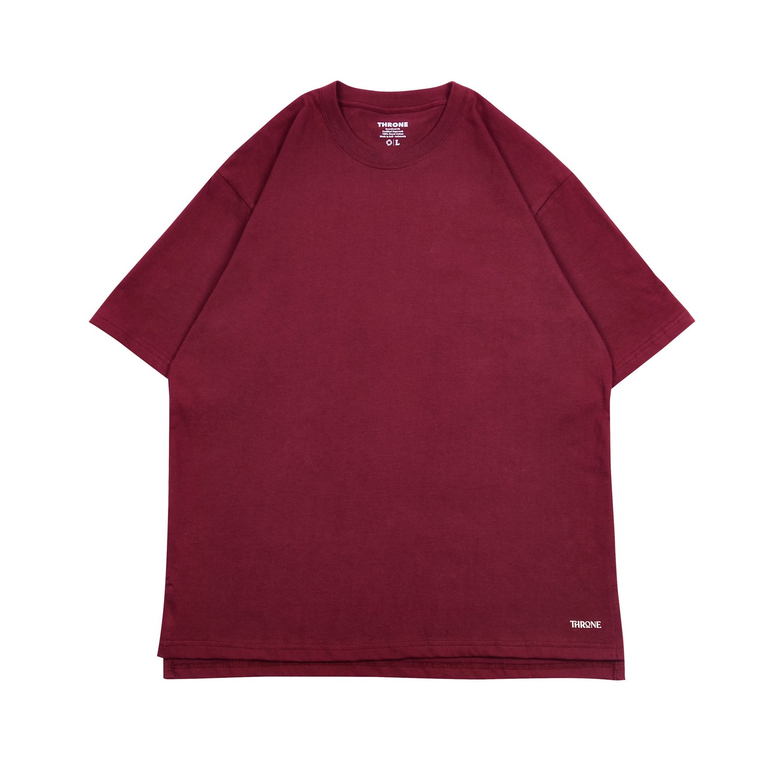 Oversized Tee Shape with 100% Cotton Combed 20’s. OEKO-TEX Certified. Post-Shrunk. Color : RED MAROON Double Stich Colar, Plasticol Hand Screeen Print Size Chart on Pictures